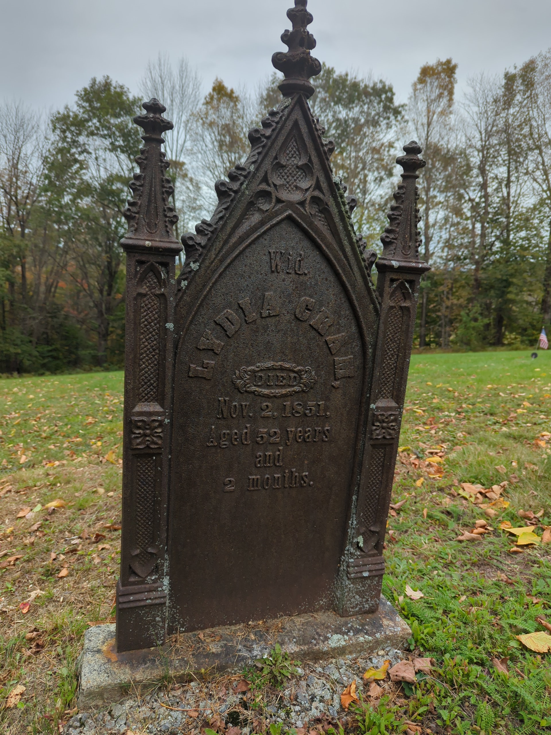 "This marker is very unusual, as it is made of metal, and the foot and head match, resembling a bed. It is the only metal marker in the cemetery."