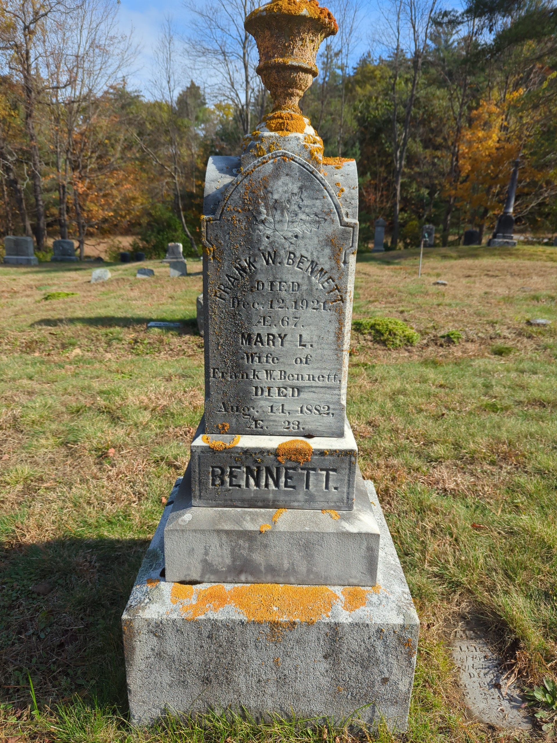 -Married on 23 Dec 1875 to Frank W Bennett in Hillsboro, NH