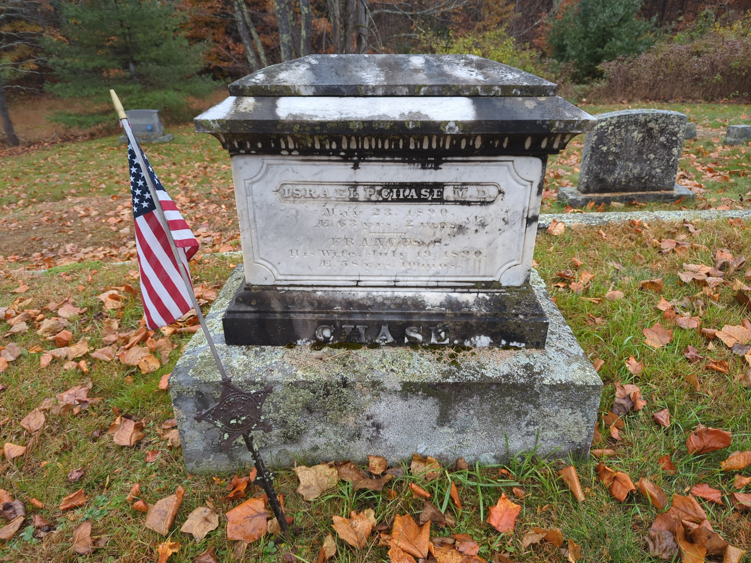 -Married on 28 Oct 1854 to Dr Israel Chase in Francestown, NH