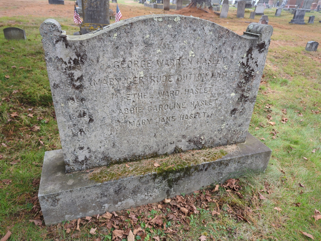 -Married on 29 Oct 1885 to George W Haslet in New Haven, CT