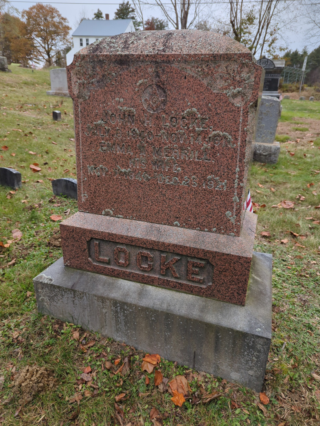-Married on 28 Nov 1867 to John H Locke in Henniker, NH