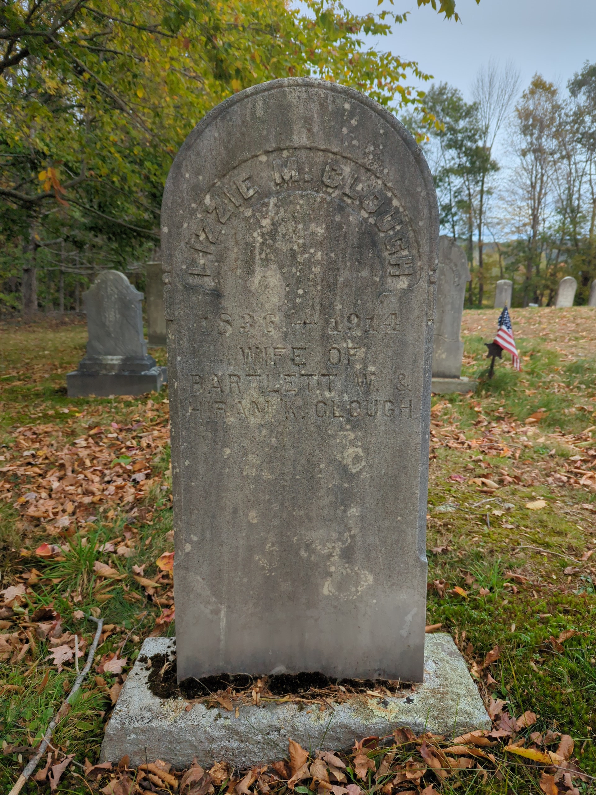 Second marriage in Mar 1873, to his younger brother, Hiram K Clough, after Bartlett's death. She was 15 years older than Hiram. No children