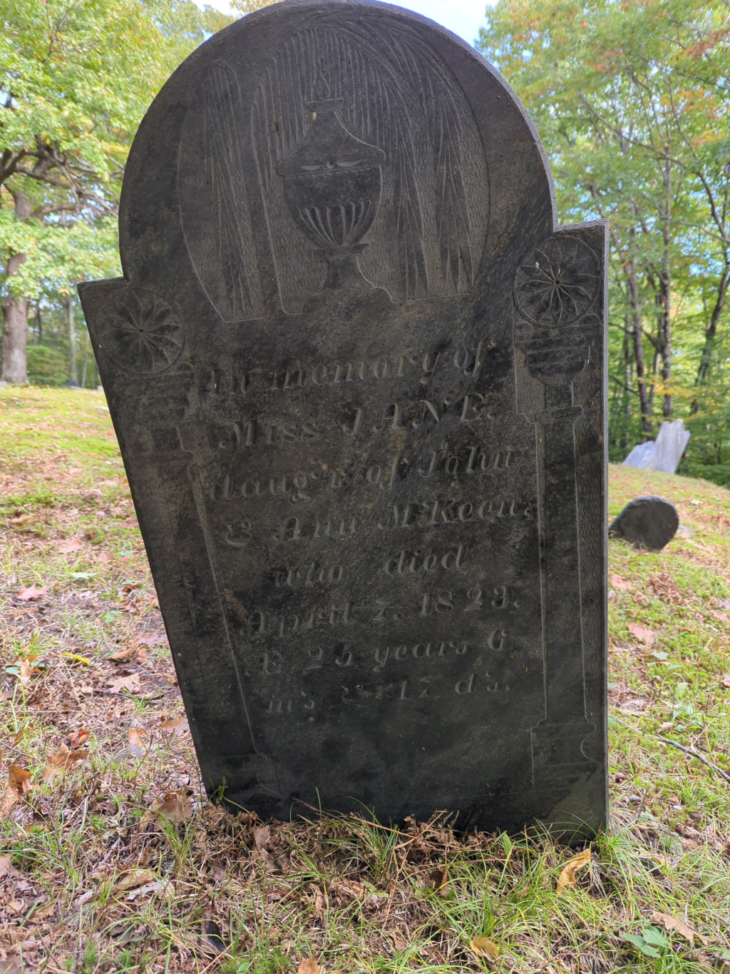 Miss Jane, daughter of John and Ann McKEEN; AE 25 years, 6 months, 17 days