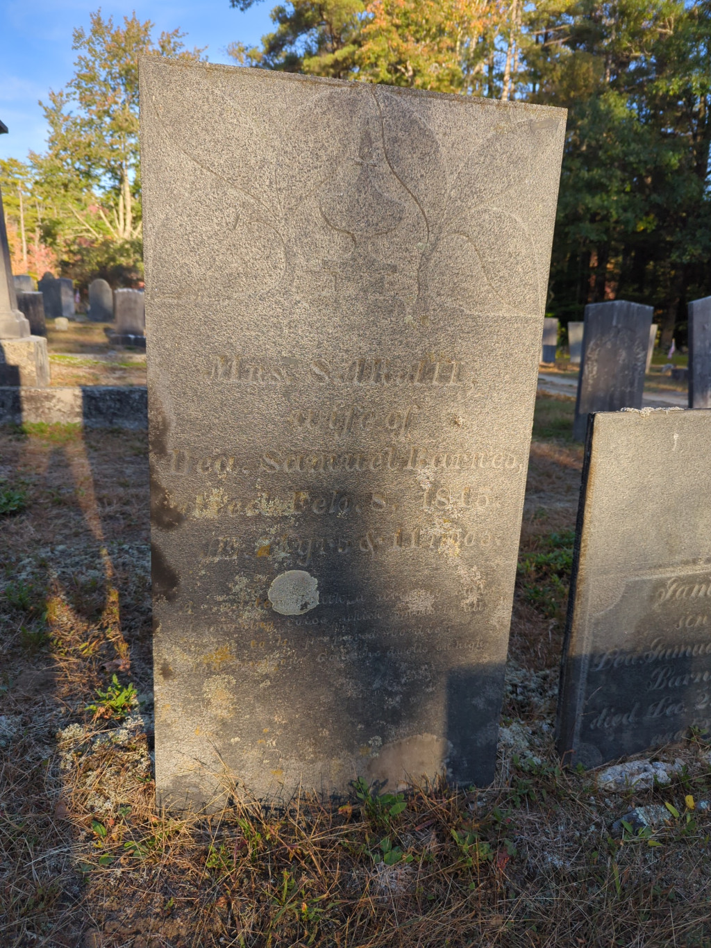 died age 71 years and 11 months, wife of Deacon Samuel Barnes