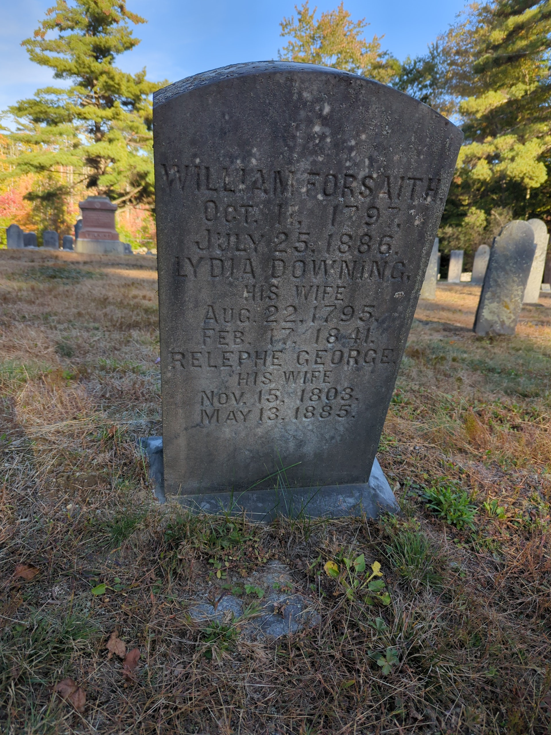 Inscription:William Forsaith 11 Oct 1797-23 Jul 1886